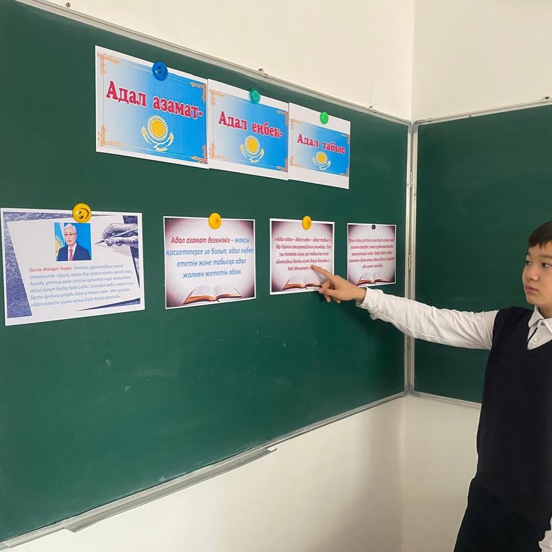 «Әділдік - адамгершілік белгісі», «Адал еңбек - жарқын болашақтың кепілі» тақырыптарында 1-11 сыныптар арасында тәрбие сағаттары өтті. Мақсаты: әділдік пен еңбексүйгіштікке тәрбиелеу.Жауапты: Сынып жетекшілер